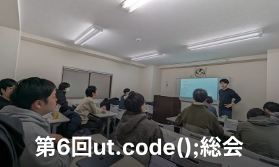 ut.code(); では、12 月 13 日に第 6 回 ut.code(); 総会を行いました。 代表交代の挨拶 まずは、代表交代の挨拶を行いました。眞...