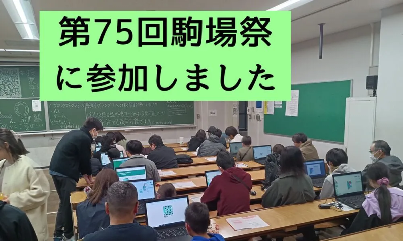 ut.code(); は、2024 年 11 月 22 〜 24 日の合計 3 日間駒場祭に企画を出展しました。今回も多くの方にお越しいただきました。3 日間を通して来場してくださった皆様、ありがとうございました! 今回の駒場祭では新入生がメインとなって競馬AI 、 Blosite といったアプリを開発してくれて、大変盛り上がるものになりました! 駒場祭で展示した内容は、以下の特設サイトからご覧いただけます。 https://kf75.utcode.net/ また、カンパにつきましては多くの方に寄付していただきました。こちらは ノート PC のレンタル費用、ビラ・ポスターの印刷費用に充...